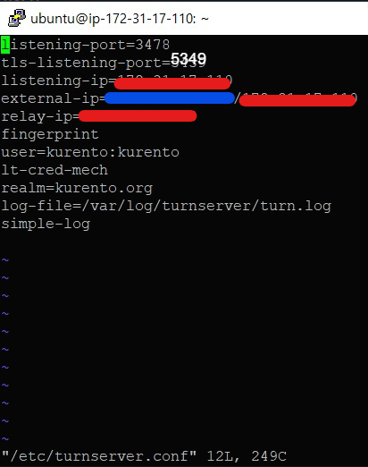 > sudo vi /etc/turnserver.conf
