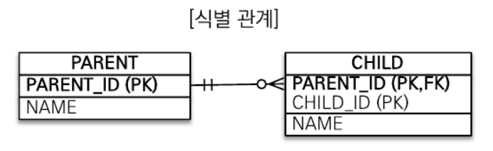 - 필수적 비식별 관계: 외래키에 null 허용 X