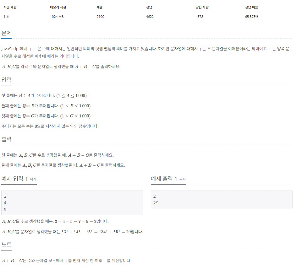 // 1번째 출력: A, B, C를 모두 숫자로 보고 계산합니다.